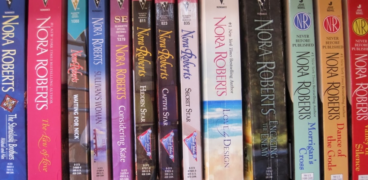 1. Nora Roberts -- I've just caught up on two of her trilogies, but there are other series and single title books awaiting my attention. Like an entire bin full. Not kidding. That does not include the books under her J.D. Robb persona, none of which I have read. I have enough to catch up on without adding those into the mix.